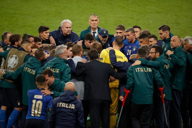 在个体技术层面上,英格兰人大概在我们之上,那个进球就是明证。然而,他们进球后一味想着防守,让我们拿到了机会、扳平了比分,这才有了点球大战。意大利队踢得非常有勇气,球员们尝试着控制比赛。有趣的是,意大利迄今为止对阵过的所有对手,都在曼奇尼的球队压迫下,踢出了他们“非自然”的足球:西班牙派出了无锋阵,英格兰在比赛末段让拉什福德打边后卫——这是曼奇尼的杰作!
