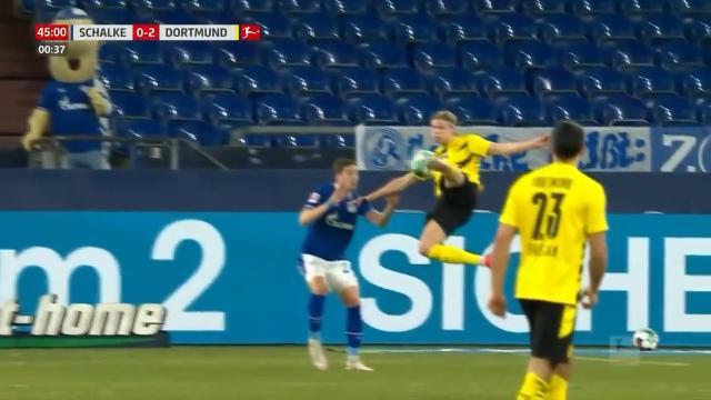 如果说开局阶段双方互有攻守还有些悬念的话,那么当沙尔克主力门将费尔曼受伤被朗格尔换下之后,比赛就彻底失去了悬念。丢球其实与朗格尔关系不大,多特蒙德前场两次抢断,桑乔与哈兰德各进了一球,桑乔本人再度上演进球加助攻的好戏,状态有了明显回升。